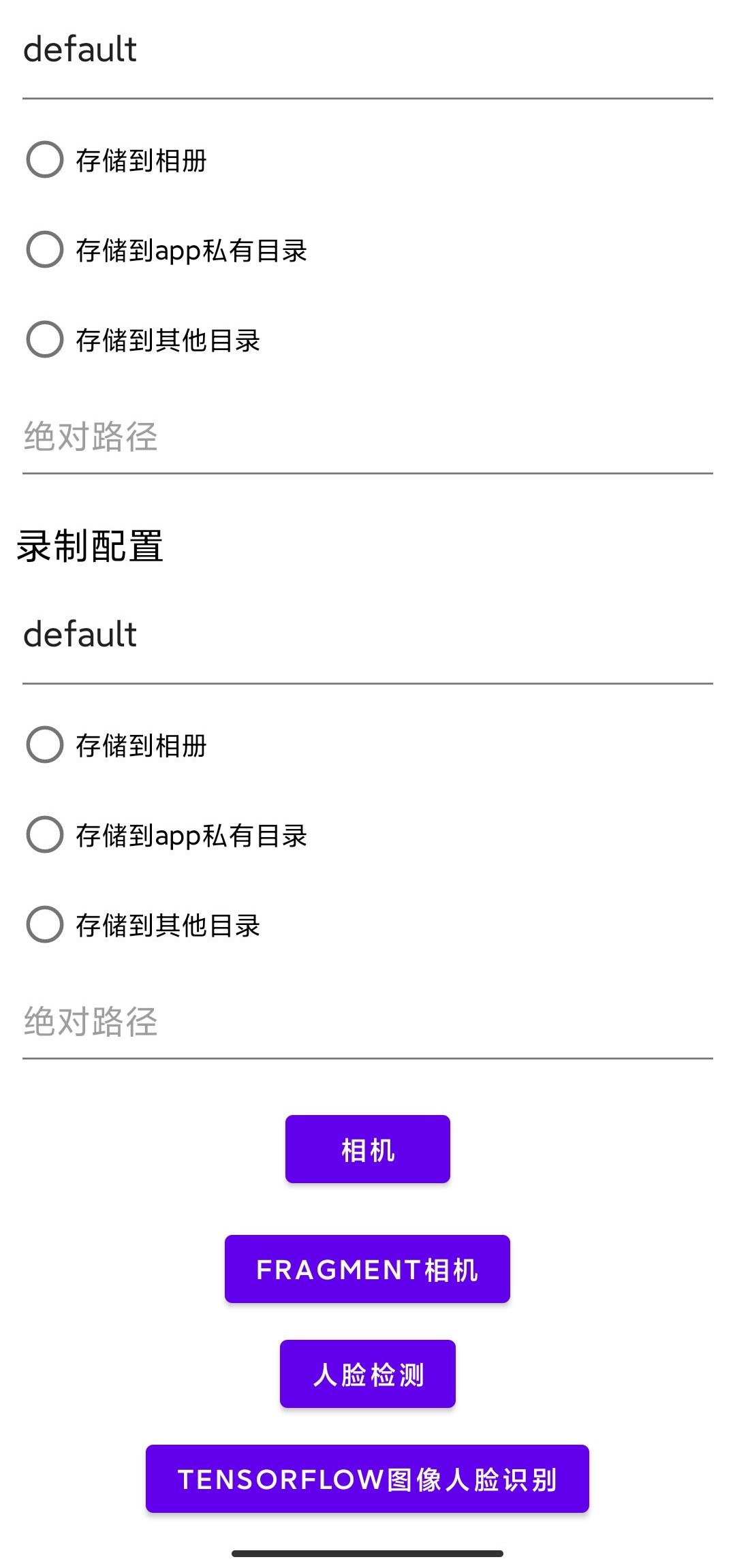 可以组合任意用例,实现拍照,录制视频,人脸检测、识别、活体检测。可在图像分析的同时录制视频或拍照。 已适配存储,可使用 saf、mediaStore、file 等,仅需要一行简单的配置。 有 activity、fragment 实现的相机界面,可以直接集成使用,也可以自由定制 ui 界面,实现自定义相机。