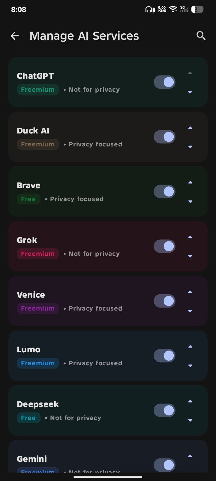 🔄 Fully customizable interface - reorder, hide, or disable any AI assistant