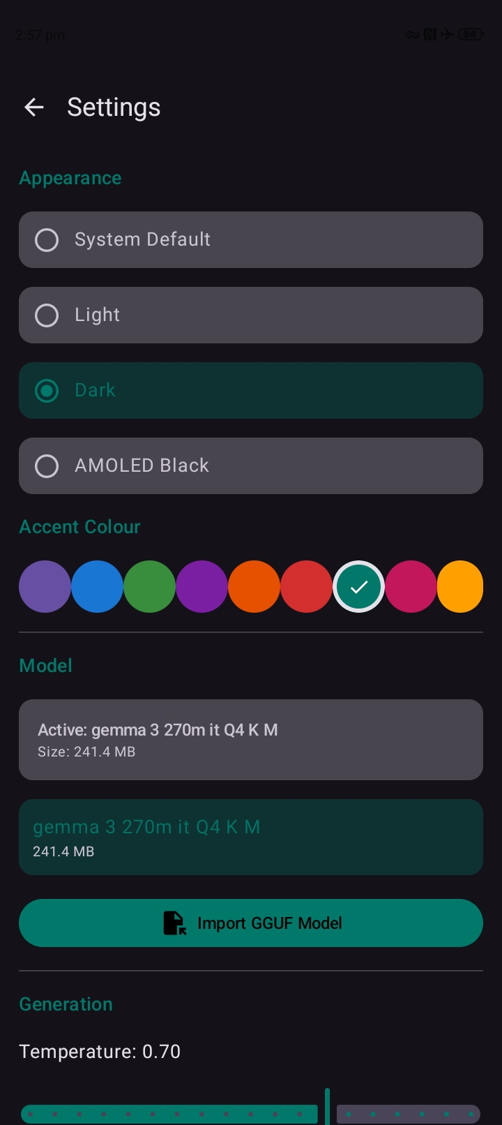 - Import Any Model — Bring your own GGUF models at runtime via file picker