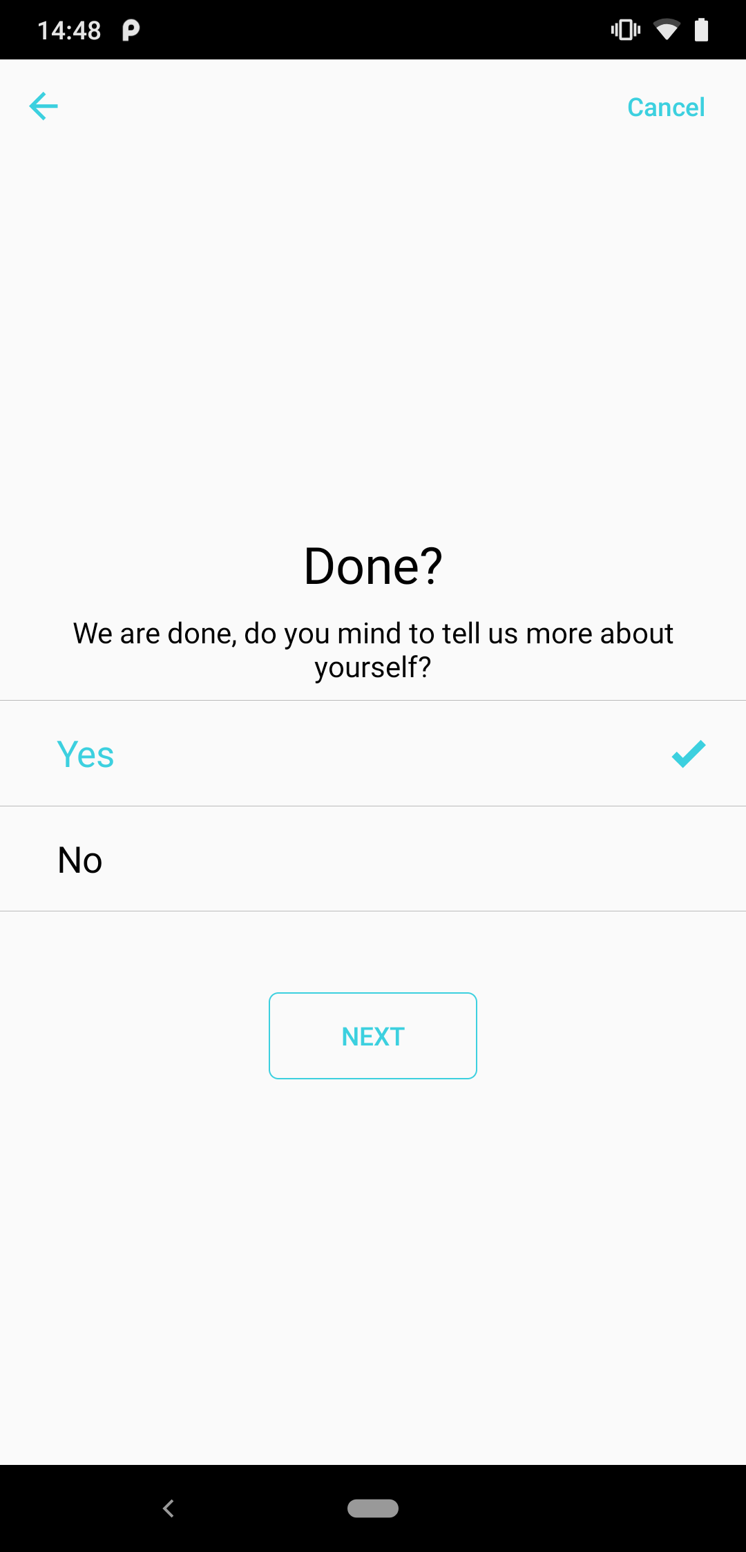 Thematically it is built to provide a feeling of a professional research survey. The library aims to be visually clean, lean and easily configurable. We aim to keep the functionality close to iOS ResearchKit Surveys.