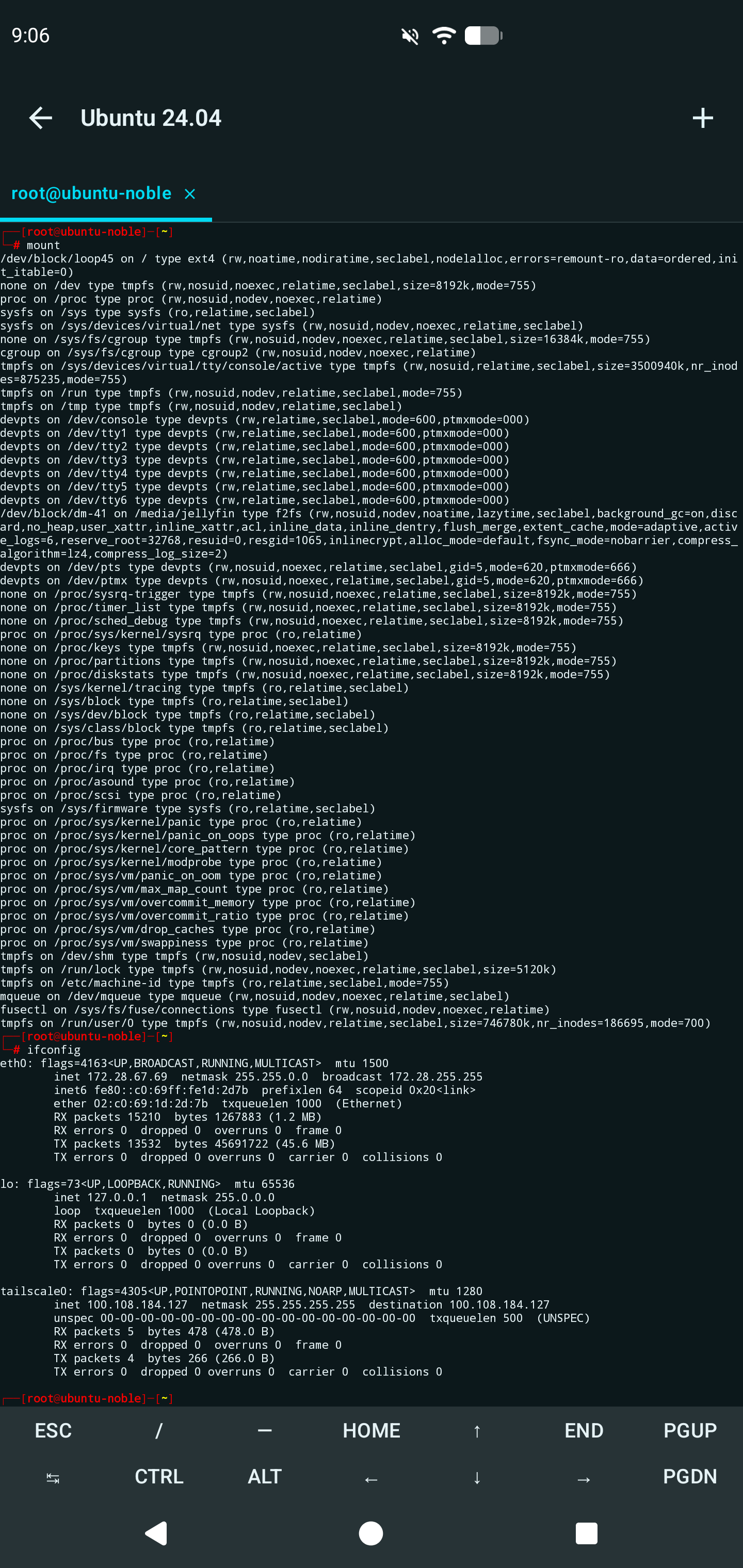 Android Storage Bind-mount /storage/emulated/0 into the container for direct access to the device's shared storage.