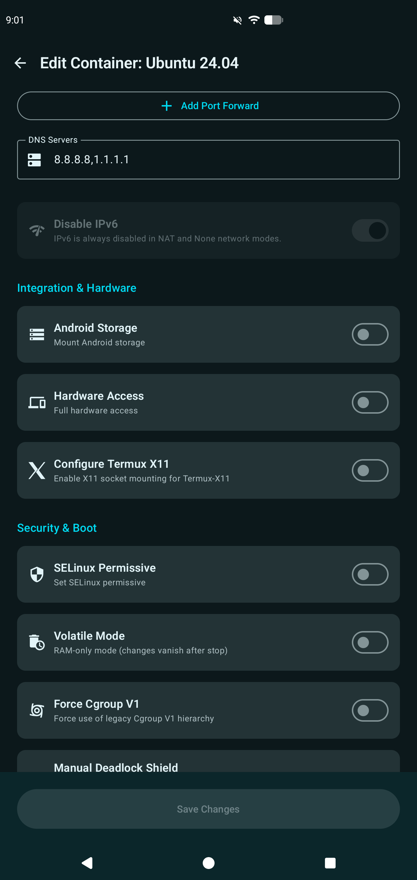 Droidspaces is designed to work natively on both Android and Linux Desktop. On Android, it handles all the kernel quirks, SELinux conflicts, complex networking scenarios, and encryption gotchas that break other container tools. On Linux Desktop, it works out of the box with no additional configuration needed.
