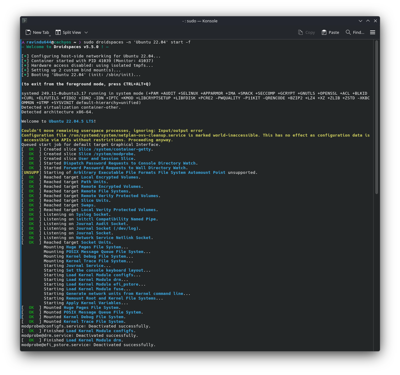 Droidspaces is a lightweight, portable Linux containerization tool that lets you run full Linux environments on top of Android or Linux, with complete init system support including systemd, OpenRC, and other init systems (runit, s6, etc.).