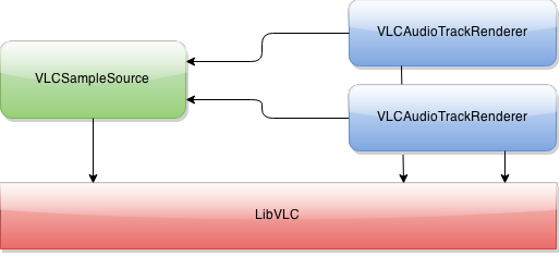 The principle is that the LibVLC is used to render audio/video/subtitle tracks within different ExoPlayer TrackRenderers implemetations.