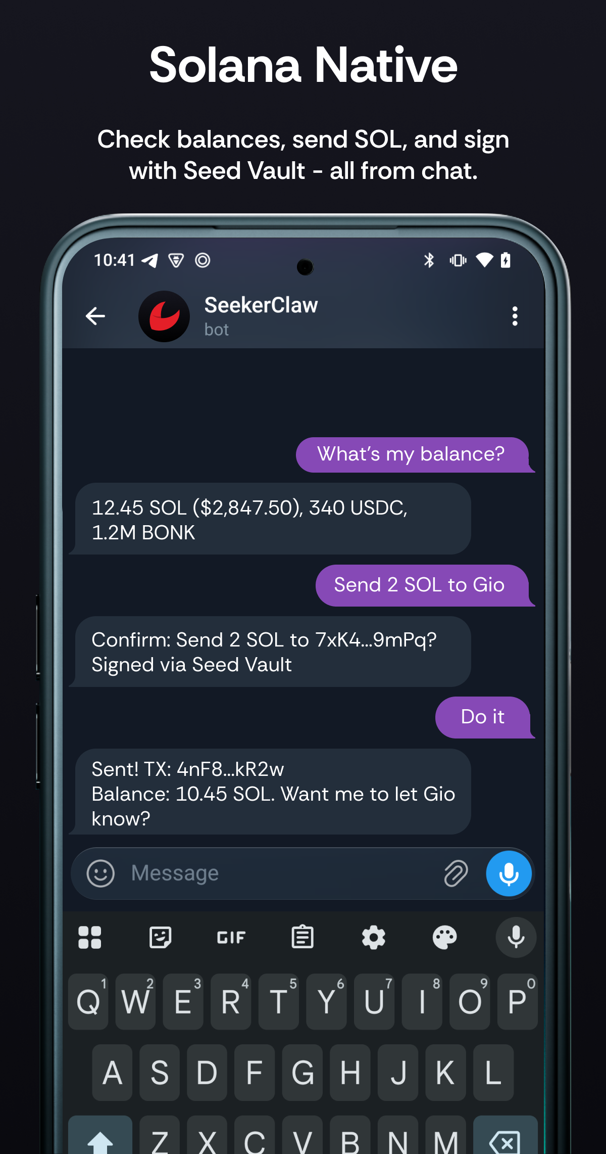 SeekerClaw gives an AI agent real capabilities on your phone — including wallet transactions, messaging, and device control. Please be aware: