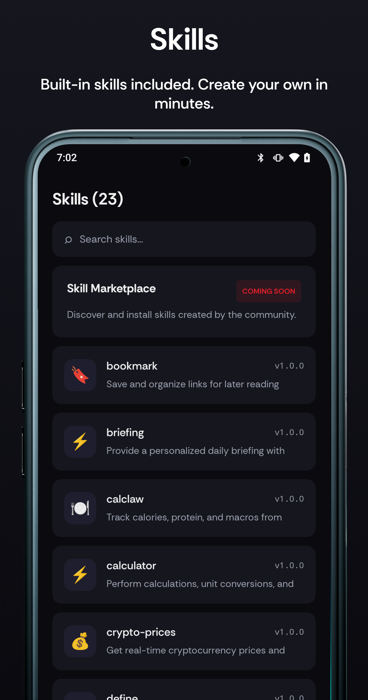 Build your own: Skills are Markdown files with YAML frontmatter. See SKILL-FORMAT.md for the spec.